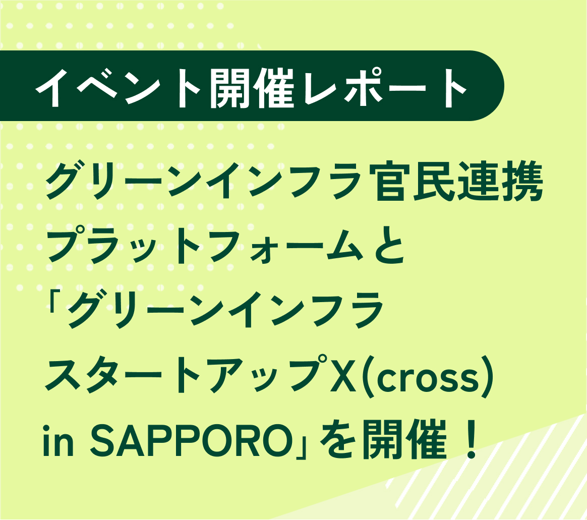 2025年9月8日(月)、グリーンインフラ官民連携プラットフォーム主催の「グリーンインフラスタートアップX(cross) in SAPPORO」に未来X(mirai cross)が協力し、基調講演・スタートアップピッチ・交流会を開催いたしました。(第1回は2025年3月に福岡で開催)
